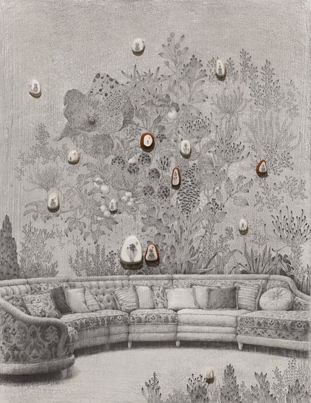 Artist Fu Hau-Shiuan was born in 1981 in Taoyuan. Through the experience of sketching on the street, he developed skills of observing and drawing very quickly. In the "Oil on Canvas" series, Fu Hau-Shiuan uses the image of a ring as a symbol of 'promise' and 'agreement'. He uses tiles, corals and other found objects as symbols to explore the agreements and connections between 'people to people', 'people to nature' and even 'country to country'. In his painting “Unborn Generation”, Fu used a piece of coral to symbolize the 'embryo'. The object is covered with dust, stain, and held by a ring. This image implies human beings’ responsibilities of the environment is passing from our generation to the next generation as an agreement. And the sprouts growing from the holes in the coral represent hopes. In addition, in his other painting "Census1 Daan and ZhongZheng districts, Taipei City", Fu used 'trees' to symbolize 'Humans'. Those trees in cities are tracing their ancestry. Although they were from the same forest, they still couldn't find their originalities since trees living in the houses around the educational hub and the luxurious area look very different now. The artist is trying to identify trees to symbolize the personality, background of the tree owners. His artwork is the reflection on the imagination of the objects, society, space, and relationships between people and people together with his life influence.