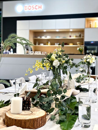 可提供顏色、品牌屬性、偏好的素材(如:木頭)、氛圍、預算......由THE STUDIO幫您搭配適合餐點的花藝佈置。